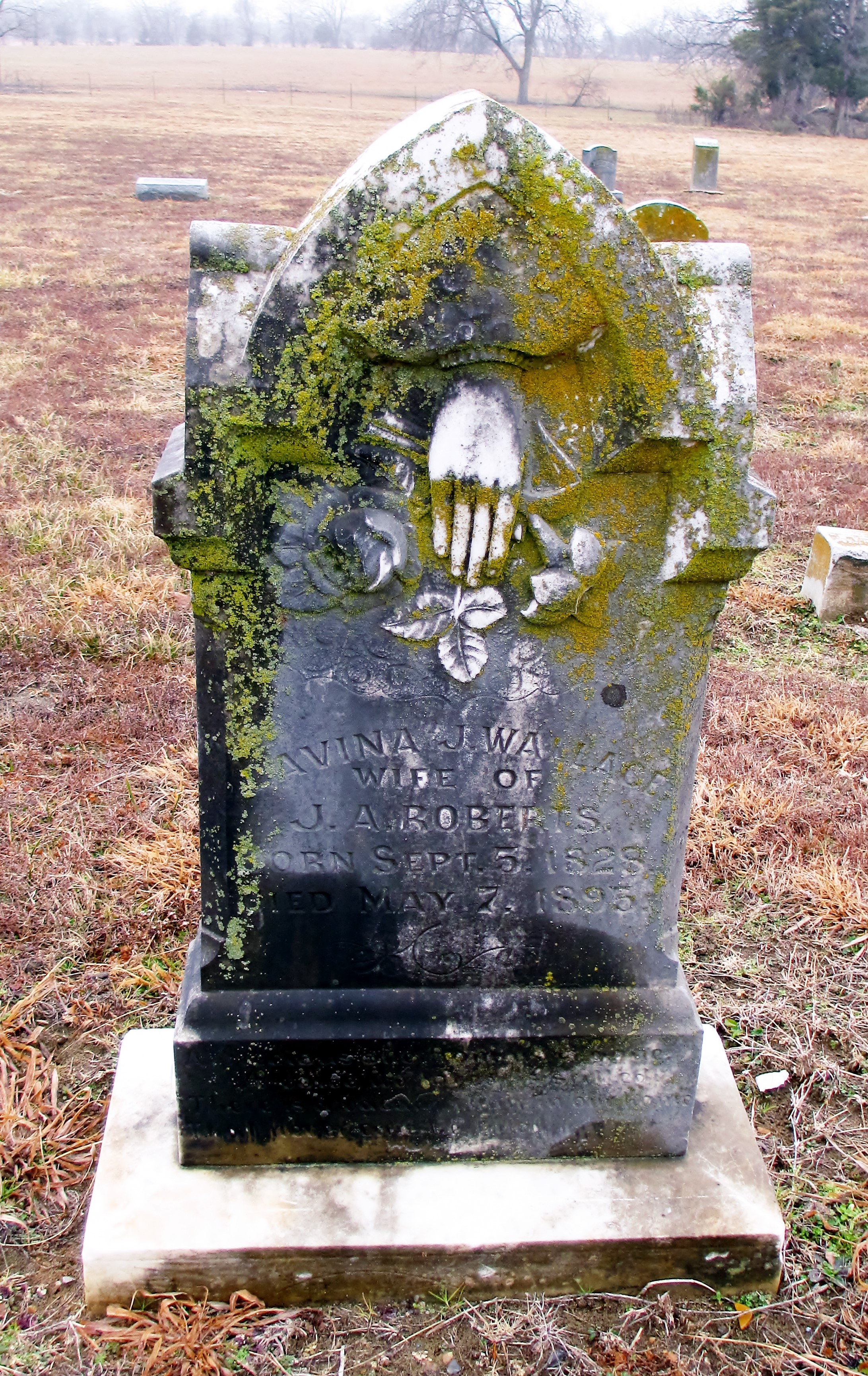 The daughter of another well-known and large family near his home caught John Anderson’s eye. Many of their family members still enjoy middle Tennessee to this day. On the 10th of September 1852, John A. Roberts and Malvina Wallis registered a marriage bond in Maury County, TN. The county record book has her as Malvina Wallis but we can be certain this is the right couple. The records through time have her first and last names spelled with a variety of spellings. But by the end of her life and on her headstone she is “Lavina Jane Wallace, wife of J.A. Roberts”.[xiv] Her nieces and nephews addressed her in letters as “Aunt Lavina”. She and John Anderson Roberts were united in marriage by James Stephens, a minister of the gospel on the 12th of September 1852.[xv]